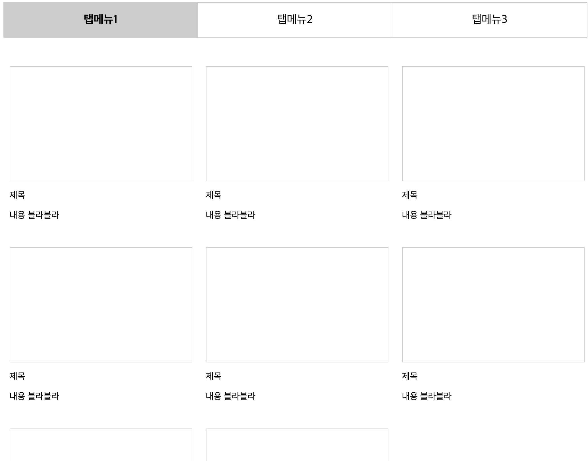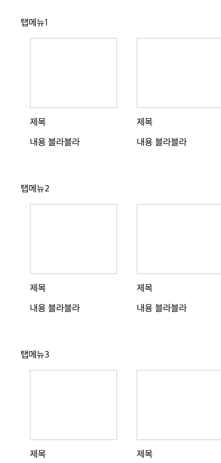 가로스크롤로 각각 탭메뉴에 해당하는 리스트가 보여지도록 한다.
